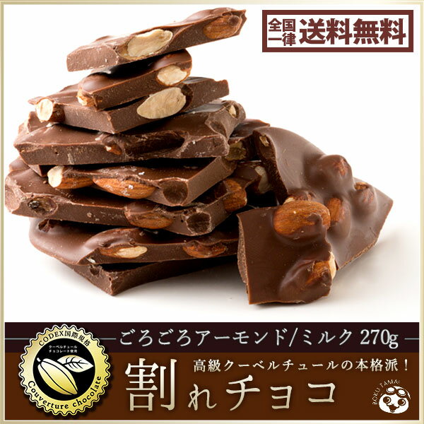 - チョコレート チョコ 割れチョコ 訳あり ミルク ごろごろアーモンドミルク 270g クーベルチュール使用 送料無料 ポイント消化 スイーツ チョコレート 【10%OFFクーポン発行中★お買い物マラソン】