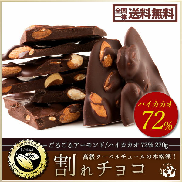 - チョコレート チョコ 送料無料 割れチョコ ハイカカオ ごろごろアーモンド 72% 270g 訳あり スイーツ 本格クーベルチュール使用 割れチョコレート チョコ 訳ありレート チョコ 業務用 製菓材料 板チョコ 【10%OFFクーポン発行中★お買い物マラソン】