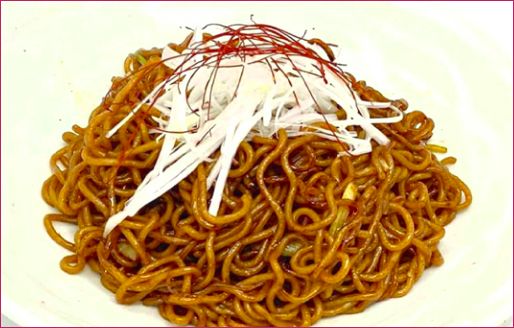 テレビでも話題となった伊達焼そば。深蒸し製法でじっくり熟成して蒸しあげた茶色の麺と香味野菜やスパイスを効かせたラード入りソースが後引く独特な旨さ!白髪ネギを乗せるのが伊達流