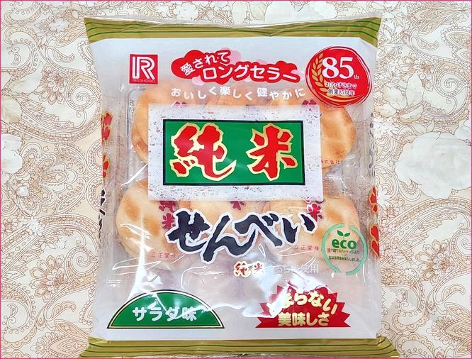 「純米せんべい」は、昔ながらのうるち米の持ち味を生かした風味豊かなおせんべいです。 厳選されたうるち米を使用し、「おいしく楽しく健やかに」をモットーに焼き上げた製品です。 純米の風味を皆様にお届け致します。 お子様のおやつや、御家庭の憩いのひとときに、又御行楽のお供にもぜひ御賞味下さい。 原材料名:うるち米(国産、米国産)、植物油脂(大豆を含む)、食塩/調味料(アミノ酸)